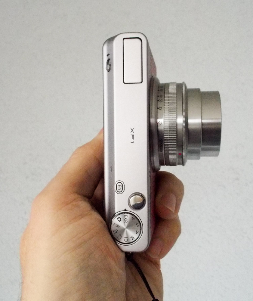 Auf der Suche nach einer Kamera für die Hemd- oder Hosentasche, also schön schmal und nicht allzu schwer, dazu mit einem Sensor auf jeden Fall größer als der übliche 1/1,7“, stieß ich auf die kleine XF1. Sie hat einen 2/3“ Sensor; eine Größe, von der ich bis dato noch nichts wusste. Seine Fläche ist halb so groß wie die eines 1“-Sensors und über 25% größer als der in Kompakten übliche 1/1,7 Zöller. Der gleiche Sensor sitzt in den Fuji X20/30 und der XQ1. Er hat 12 MP, was in einigen Tests als zu gering angesehen wird. Völliger Blödsinn, da völlig ausreichend, praxisfremde Testerei eben.