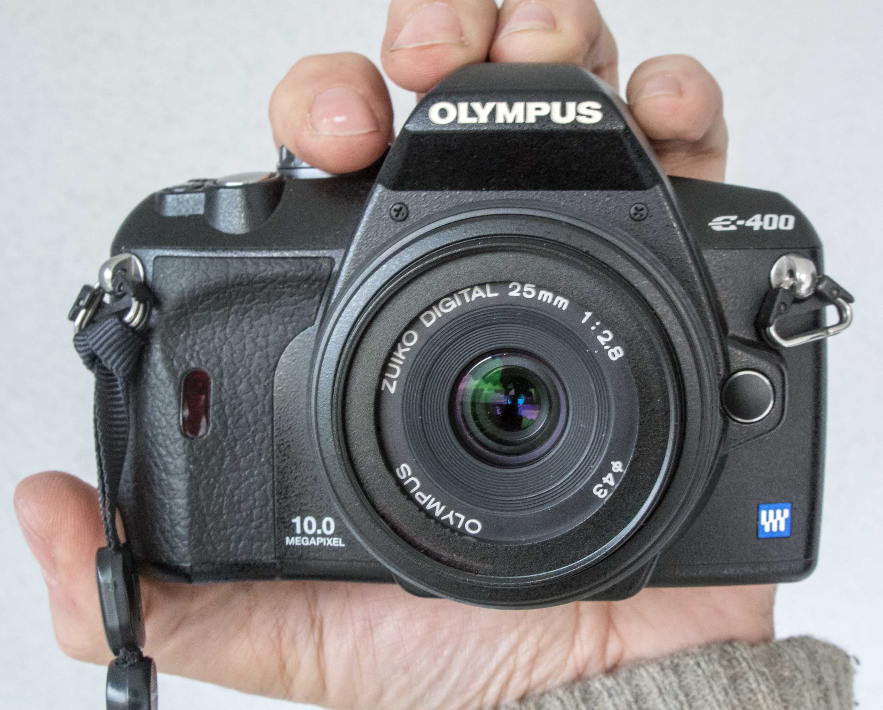 Zu den Four-Thirds kam ich schon 2008. Da war die Olympus E-400 bereits 2 Jahre alt. Als sie 2006 herauskam, war sie die kleinste DSLR auf dem Markt. Sie hat noch einen Kodaksensor und hat mich fasziniert, weil sie mit dem 25er Pancake (entspricht 50 mm KB) eine sehr kompakte Einheit bildet. Das Objektiv ist schon offen klasse und scharf bis in die Ecken: ein Vorteil der Telezentrierung der FT-Objektive (auch der MFT-Objektive). Trotz des kleinen Sensors, der nur ein Viertel der Fläche eines Vollformatsensors hat, kannst du bei 2,8 ein Porträt schon schön freistellen.